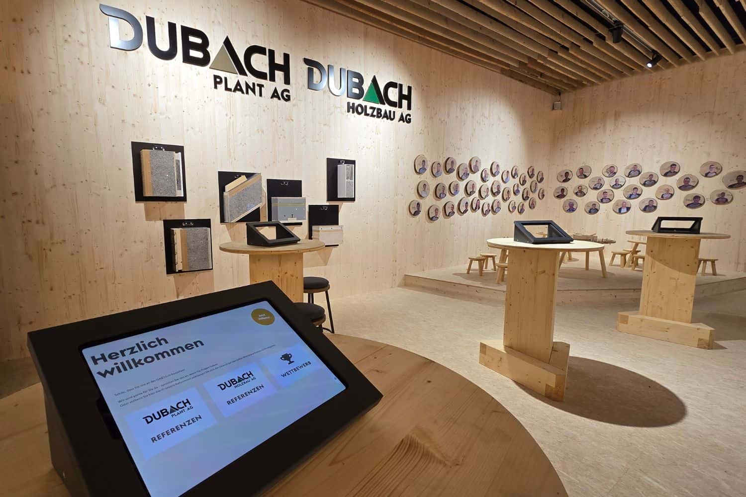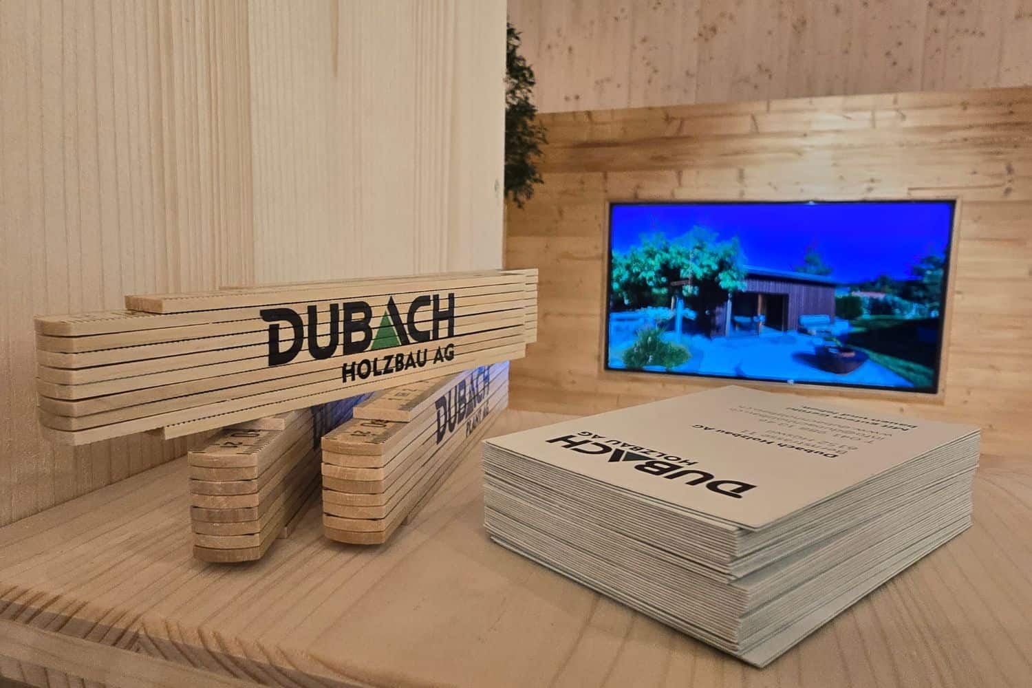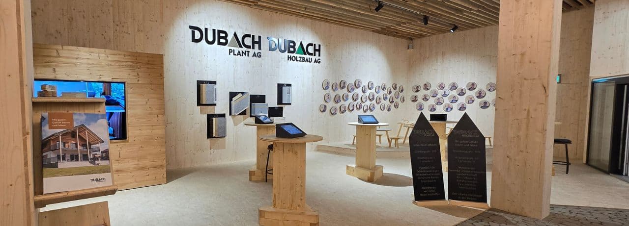 Und, was wir euch nicht vorenthalten: Die Antwort zu unserem Wettbewerb, die während der gesamten Ausstellung rege diskutiert wurde. Das Durchschnittsalter aller Mitarbeitenden der Dubach Holzbau AG und der dubach plant ag. Die Antwort lautet 30.30 Jahre. Die Gewinner werden direkt von uns benachrichtigt.