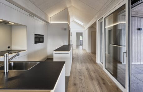 Mitten im Dorfkern steht sie: Die Käserei Geiss in einem neuen, glanzvollen Kleid. Die Käsi-Besitzer haben sich entschieden, das Gebäude aufzustocken und umzubauen. Das Architekturbüro Kurmann Architekten AG aus Menznau hat hierfür die Gestaltung und die Baueingabe gemacht, die dubach plant ag anschliessend die weitere Planung und Bauleitung übernommen. Die stehende Fassadenverkleidung aus Holz in Kombination mit Metallzargen gibt dem Haus seine Einzigartigkeit. Im Innern ergibt das Beleuchtungskonzept im Zusammenspiel mit den raumhohen Fenstern eine schöne Symbiose und schafft ein angenehmes Wohnklima. Das Projekt entstand in Zusammenarbeit mit der kantonalen Denkmalpflege.