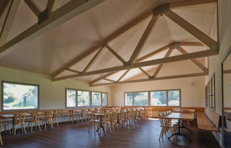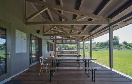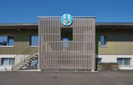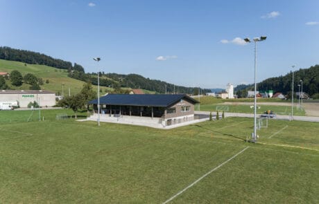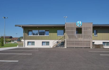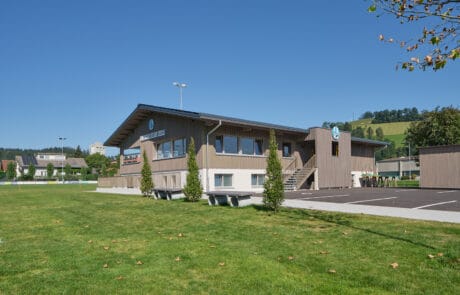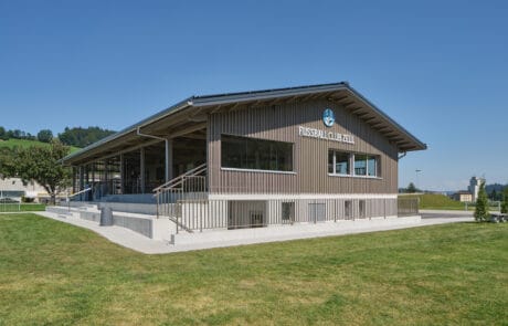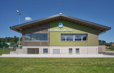 Das Clubhaus des FC Zell war in die Jahre gekommen. Das 1998 erbaute Provisorium erfüllte nicht mehr die Anforderungen. So wurde mit Hilfe der Gemeinde Zell und Sponsoren der Neubau des Clubhauses realisert. Das ganze Erdgeschoss ist in Holzbauweise erstellt. Die vom vorherigen Gebäude übernommenen Nagelplattenbinder erinnern an die vielen gute Stunden im alten Clubhaus. Passend zum Fussballplatz wiederspiegelt sich das Rasengrün optisch in der wunderschönen Fassade. Wir freuen uns sehr, an diesem Projekt mitgearbeitet zu haben, das der jungen Generation gute Bedingungen für die Zukunft bietet. Hopp FC Zell!