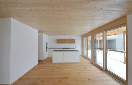 | Besonderheiten | Vorvergraute Holzfassade. Geschossdecken mit akustischer Wirkung. Schöne Holzbodenbeläge. |