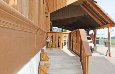| Besonderheiten | Bauholz und Fassadenholz aus CH Holz, Hybride Holz-/Betonverbunddecken mit Sichtbalken, Fassadenoptik |