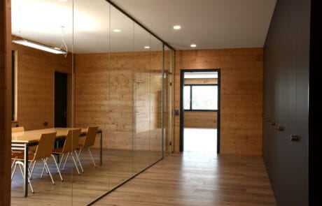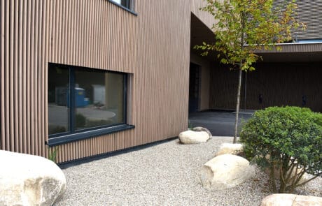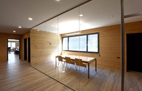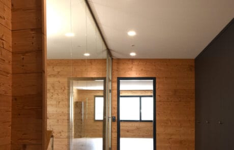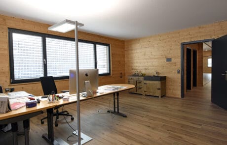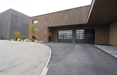 Das ästhetische Erscheinungsbild des Erweiterungsbaus in Huttwil fällt sofort auf. Die neue Halle mit ihren klaren Linien fügt sich bestens in das Gesamtbild mit der bestehenden Produktionshalle ein. Die Vorteile der Industriehalle aus Holz kommen insbesondere im Innern zu Geltung. Denn eine ausgeglichene Hallentemperatur und der Schutz vor Erschütterungen ist für den Betrieb der sensiblen Hochpräszisionsmesstechnik des Metallbauunternehmens unabdingbar. Mit einem U-Wert von 0.10 W/(m²K) haben die Wände im Bereich des 3D-Messraumes den Standard eines Passivhauses. Der neue Bürotrakt mit viel Altholz rundet den schönen Hallenbau ab und rüstet die Firma bestens, um sich am nationalen und internationalen Markt weiterzuentwickeln.