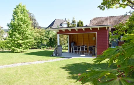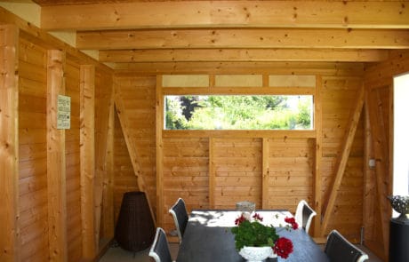 Der Entwurf und die Baueingabe dieses Gartenhauses erfolgte durch den Bauherrn. Die Ausführungsplanung, die Vorproduktion sowie das Aufrichten der Dubach Holzbau AG wurde in Form einer Lehrlingsarbeit abgewickelt. Somit ist dieses Gartenhaus nicht nur optisch wunderschön, sondern hat auch einem jungen Berufsmann zu vielem neuen Know-How verholfen.