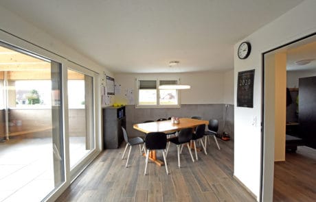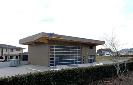 Der schlichte Neubau dieser modernen Werkhalle für die Thomas Hunkeler Gartenbau GmbH bringt dem Unternehmen grossen Mehrwert. Der neue Werkhof wurde effizient in Holzbauweise realisiert. Das Ergebnis kann sich sehen lassen: Viel Lagerplatz und ein grosszügiger Maschinenraum sind das Herzstück des neuen Gebäudes. Im Obergeschoss befinden sich zudem eine Garderobe sowie ein schöner Aufenthaltsraum für die Mitarbeitenden.