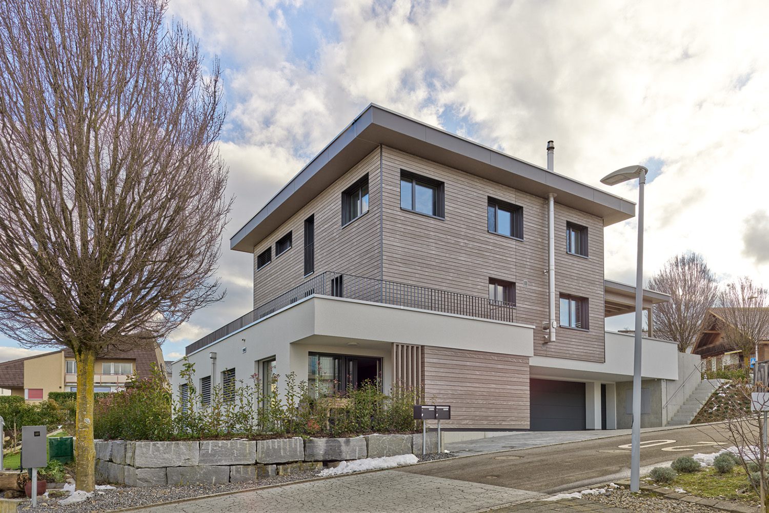Ein Wohnhaus mit Einliegerwohnung und Seesicht. Was für unsere Zimmermänner einen Arbeitsort mit Aussicht bedeutete, ist für die Bauherrschaft heute ein Zuhause mit Weitblick.