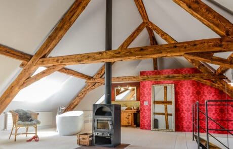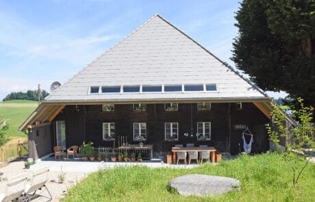 «Holz ist ein sehr lebendiger Baustoff. Und gerade in einem alten Haus wie unserem kann das Holz wunderbare Geschichten erzählen! Der Zugang zum Bestehenden sowie ein Gespür für Erhaltenswertes war uns darum wichtig beim Umbau dieses nicht alltäglichen Gebäudes. Die Firma Dubach war sehr offen dafür und ist auf unsere zahlreichen Ideen und Wünsche eingegangen. Uns ist bewusst, dass wir nicht die einfachsten Bauherren waren. Ein Kränzchen binden möchten wir auch Matthias Müller von dubach plant ag. Er hat trotz aller kreativen Ausschweifungen unsererseits stets den Finger auf den Kosten gehabt und dem Ganzen den notwendigen Rahmen gegeben!»