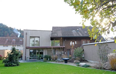 «Holz isch heimelig. So stand es ausser Frage, dass wir den Teilabriss des bestehenden Holzhauses wieder mit Holz ersetzen. An unserem neuen Daheim begeistert uns nun auch die hohe Qualität des Holzhauses verbunden mit den architektonischen Finessen unseres Architekten!»