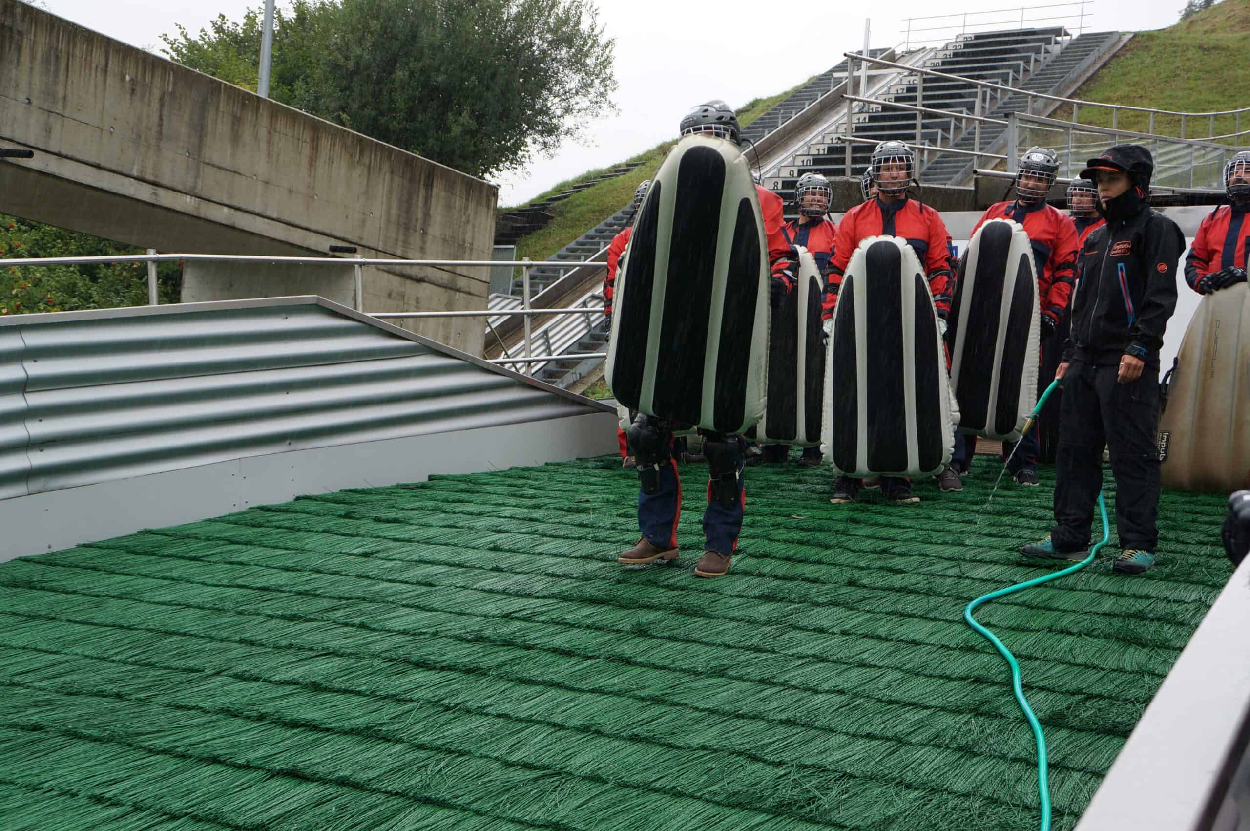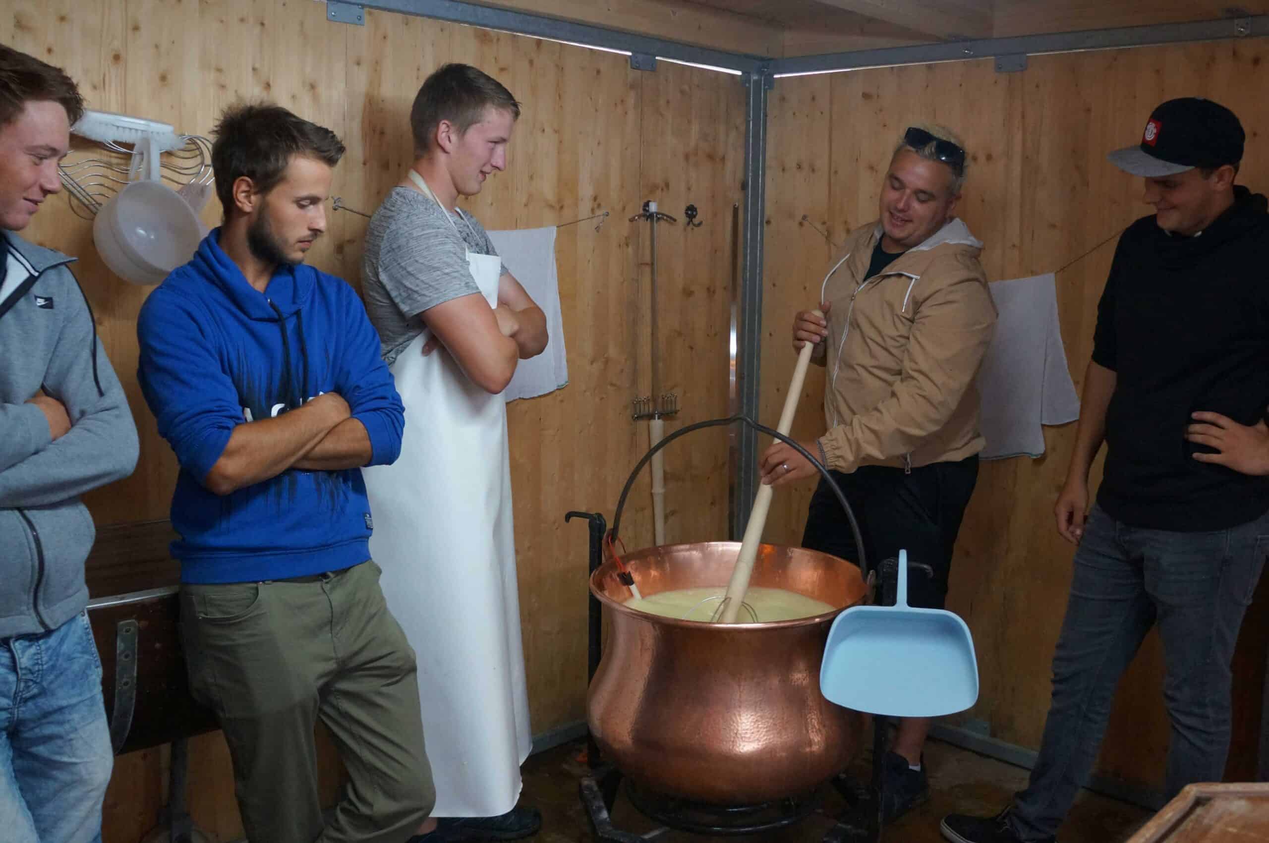 Zum 100-jährigen Jubiläum unternahm die Belegschaft der Dubach Holzbau AG, Hüswil einen zweitägigen Ausflug. Mit dem Car ging’s am frühen Freitagmorgen, 31. August 2018 los – das Ziel blieb bis zuletzt unbekannt. In Einsiedeln teilte sich das Team auf. Eine Gruppe durfte eine spannende Führung auf den Turm und auf den beeindruckenden Dachstock der Klosterkirche unternehmen. Die andere Hälfte versuchte sich als Käser. Nach einer Führung durch die Milchmanufaktur durften die Mitarbeitenden selber Hand anlegen und ihr handwerkliches Geschick beim Käsen unter Beweis stellen. Nach dem Mittagessen folgte das Highlight: Airboarden auf der Sprungschanze! Nach einer Instruktion und bestens ausgerüstet stürzten sich die Mutigen den Schanzenhügel hinunter. Der Temporekord auf dem grossen Schanzenhügel betrug beeindruckende 95 km/h! Anschliessend folgte eine gut stündige Wanderung auf die Berghütte. Dort liess man den ereignisreichen Tag bei einem feinen Znacht und lustigen Stunden ausklingen. Am nächsten Morgen stand ein Besuch im Natur- und Tierpark Goldau auf dem Programm. Mit einem guten Gefühl und vielen schönen, unvergesslichen Eindrücken trat das Team die Rückreise an.